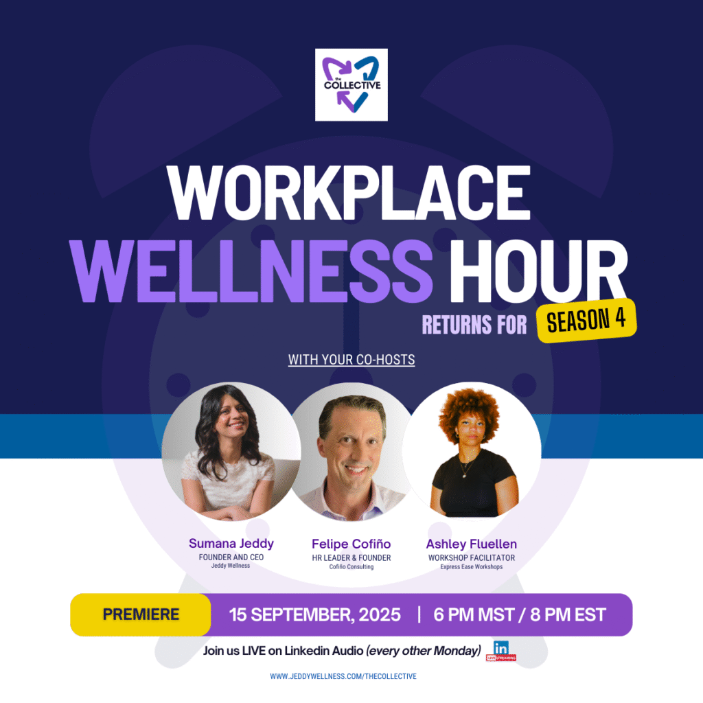 Founder and CEO of Jeddy Wellness and The Workplace Wellness Collective, comes with 10 years of expertise in public health. Sumana is a recognized leader in evidence-based workplace wellness, featured in publications like The Globe and Mail. Honored as the runner-up for Faces of Wellness by Alberta Blue Cross in 2023, Sumana continues to passionately shape the landscape of workplace health.
